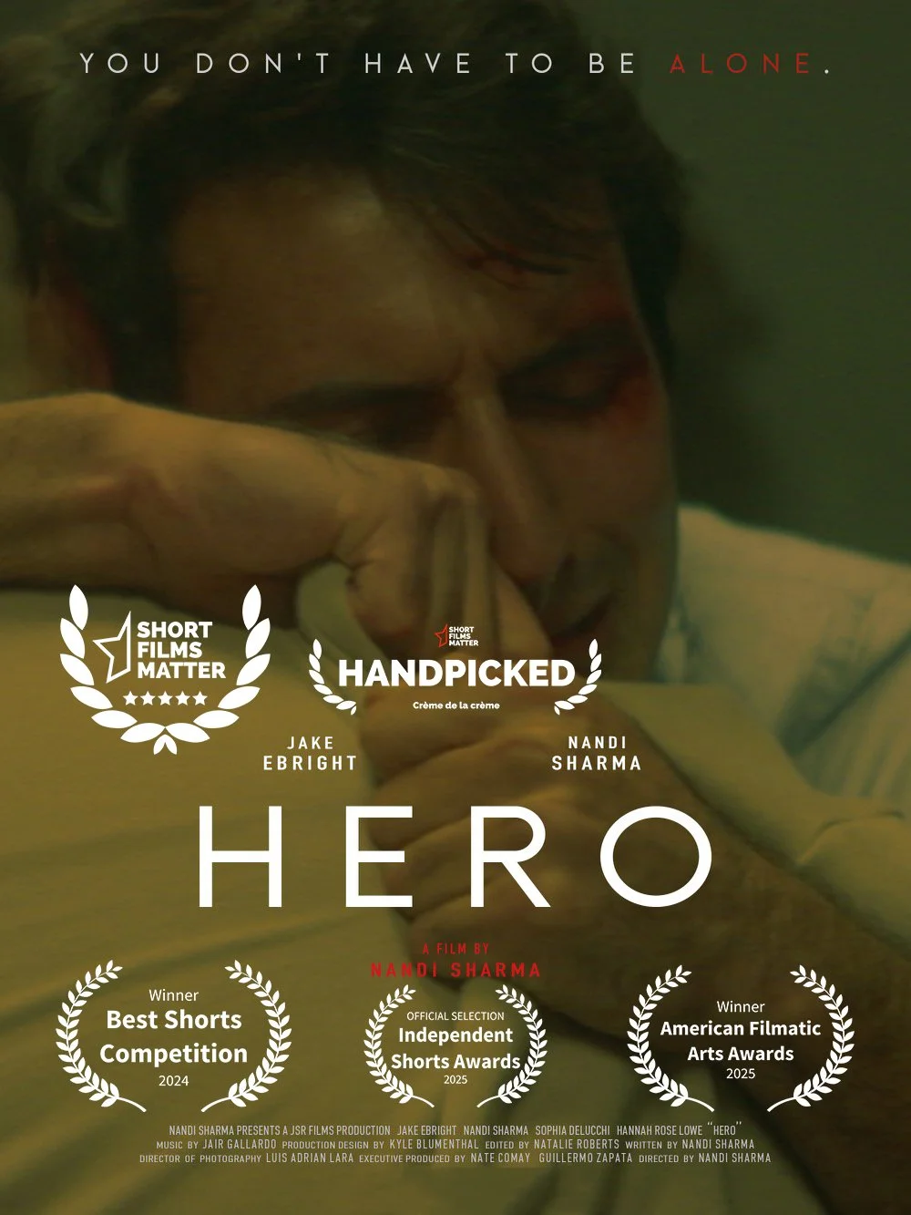 Hero has been recognized with three awards, including Best Actor and Best First-Time Filmmaker from the American Filmatic Arts Awards, and an Award of Special Merit Mention from the Best Shorts Competition.